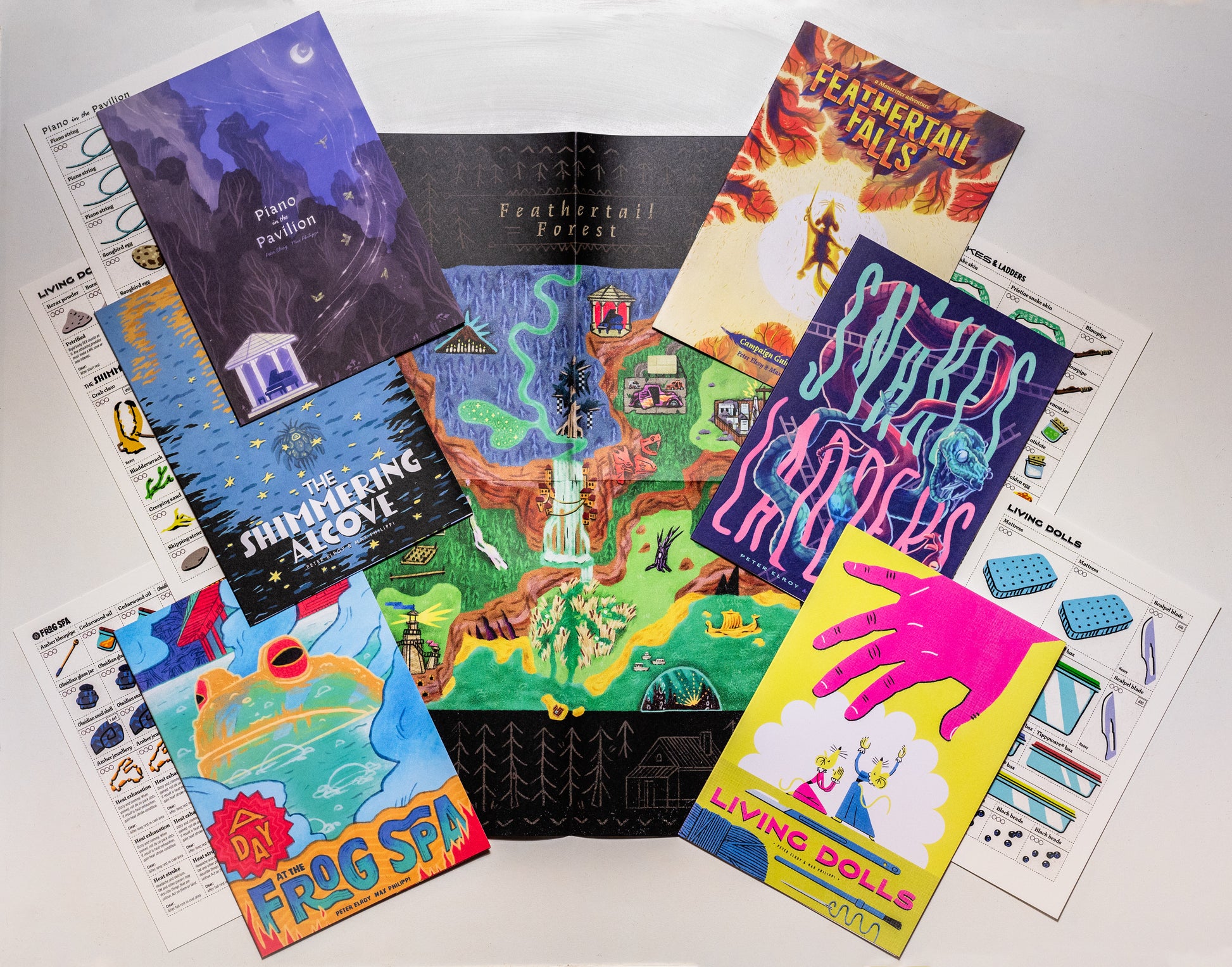 - Mini-campaign - The setting guidebook lays out the Feathertail Forest, a region to explore with mysteries to solve. Each adventure pamphlet describes a place that can be found somewhere within the forest, and has tie-ins with the other adventures and the region itself.